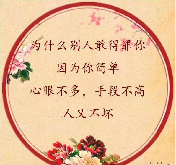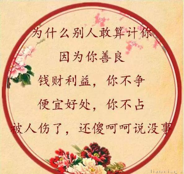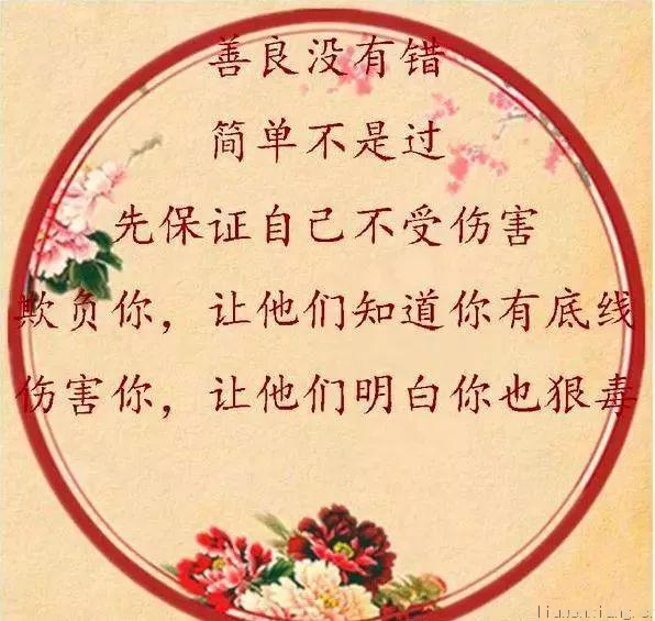 好好做人!善良为本!(情感,鸡汤,美文!) 善良没有错,简单不是过,先保证自己不受伤害,欺负你,让他们知道你有底线,伤害你,让他们明白你也狠毒。 要把诺言,留给诚信的人!要把在乎,留给重情的人!要把坦诚,留给忠厚的人!要把忠义,留给交心的人!要把善良,留给感恩的人!要把真心,留给珍惜的人! 人这一辈子,人品永远比金钱重要。金钱能带给你一时的得瑟, 但人品却能带给你一生的幸福!一个人,可以缺钱,但不能缺德。一个人,可以有手段,但不能违背良心。 被人算计不要紧,被人欺负不要紧。 坦荡做人,真诚待人;善良为人,踏实做事; 凭良心,尽本份; 不让良心沾满灰尘,不让别人戳脊梁骨! 人这一生,就是要守好人品,做个好人!,做个善良人!
